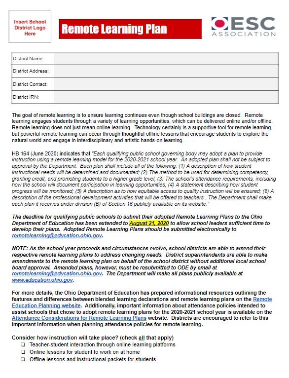 Use the contents of this page to plan and create your "Remote Learning Plan".